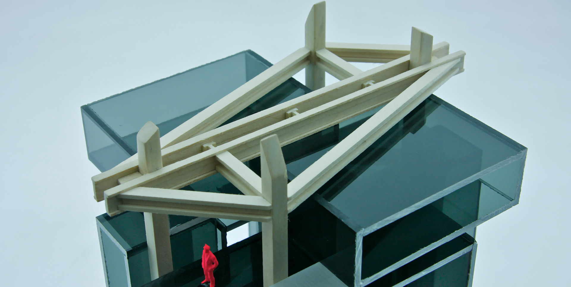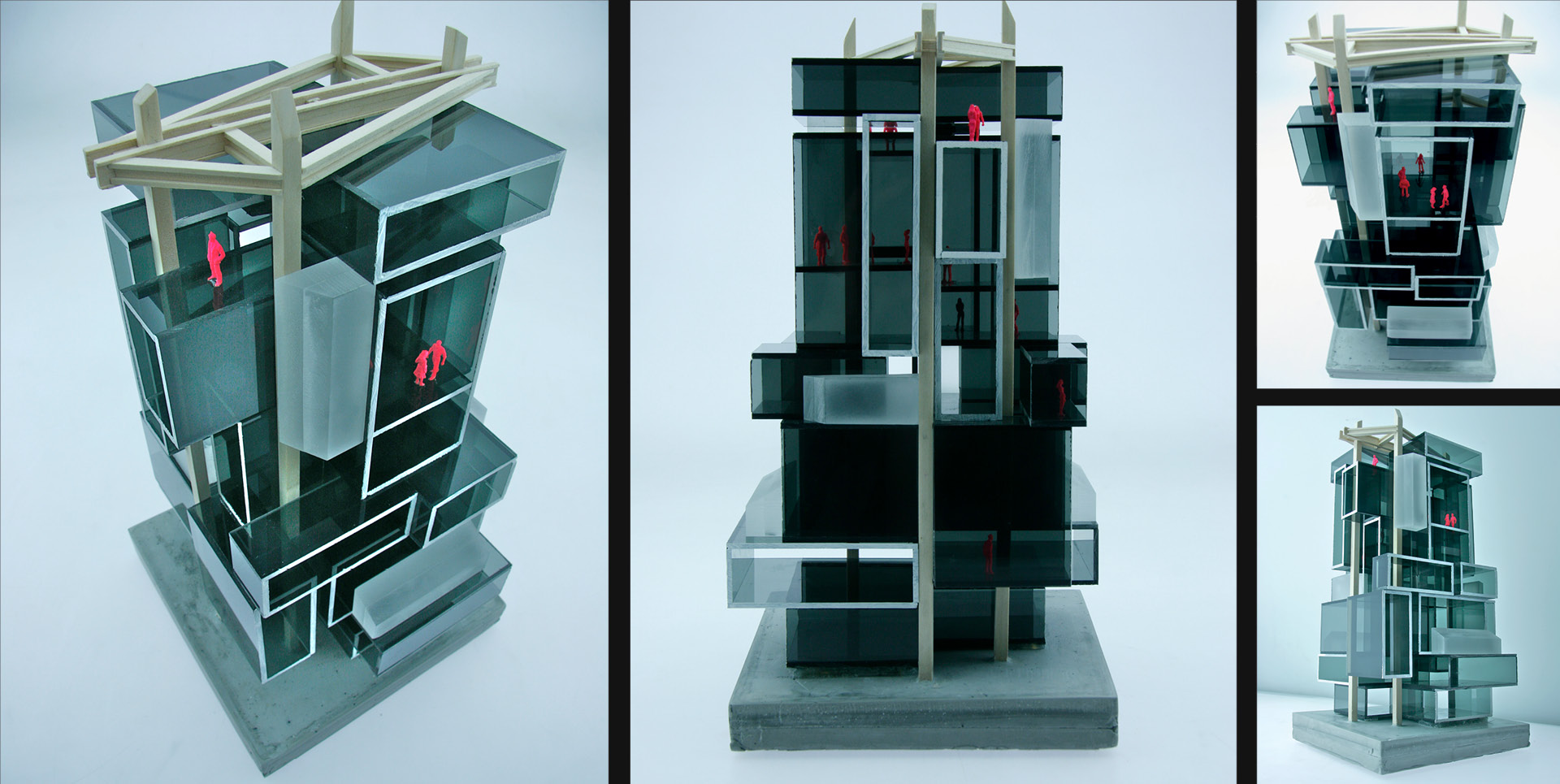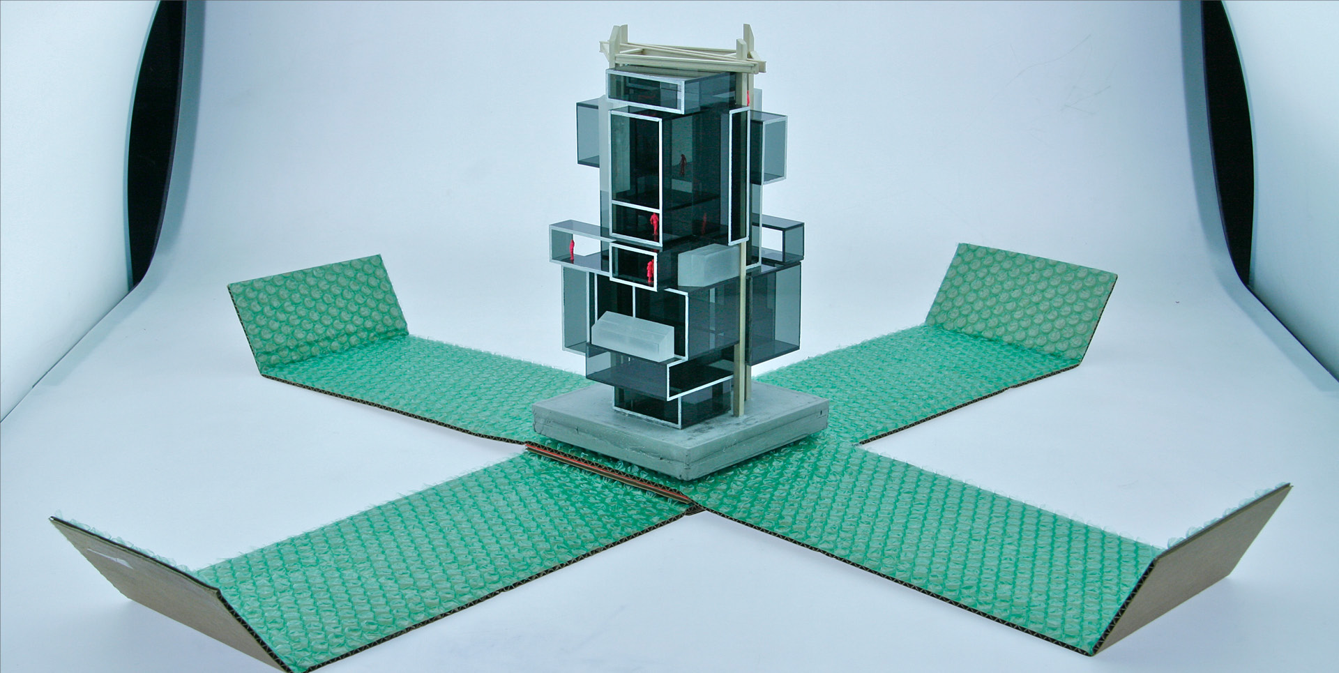This model was built in 2012 for the purpose of controlled demolition. The model was struck with a 5-lb concrete payload traveling at approximately 55 mph. The model exploded unilaterally. Lessons learned: E = M x V, and meteors will always win. Materials used: Rockite cement, acrylic plastic, dimensional basswood, white glue, acrylic solvent, spray adhesive, spray paint, acrylic paint, Plastruct figures.