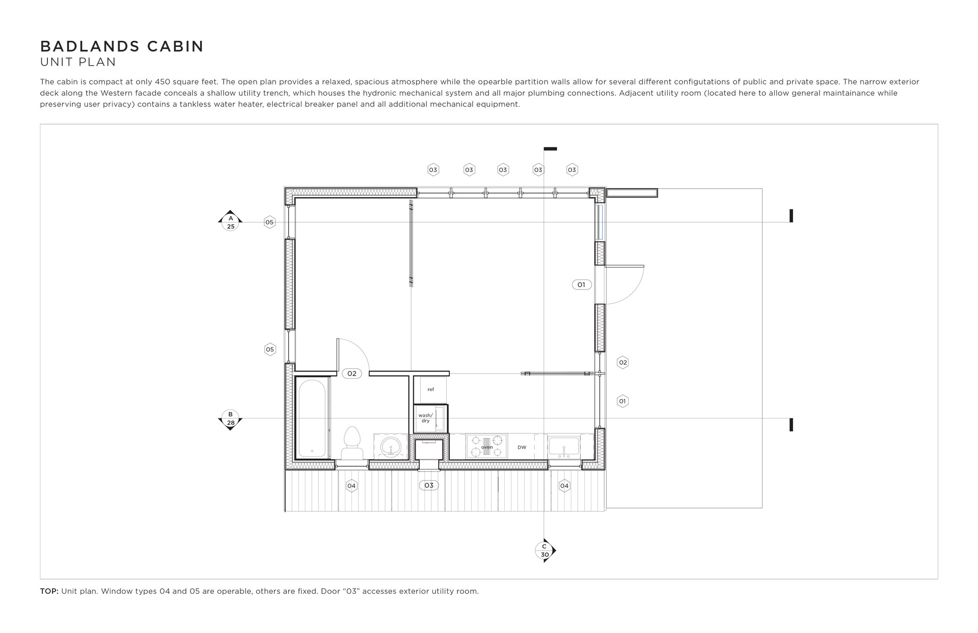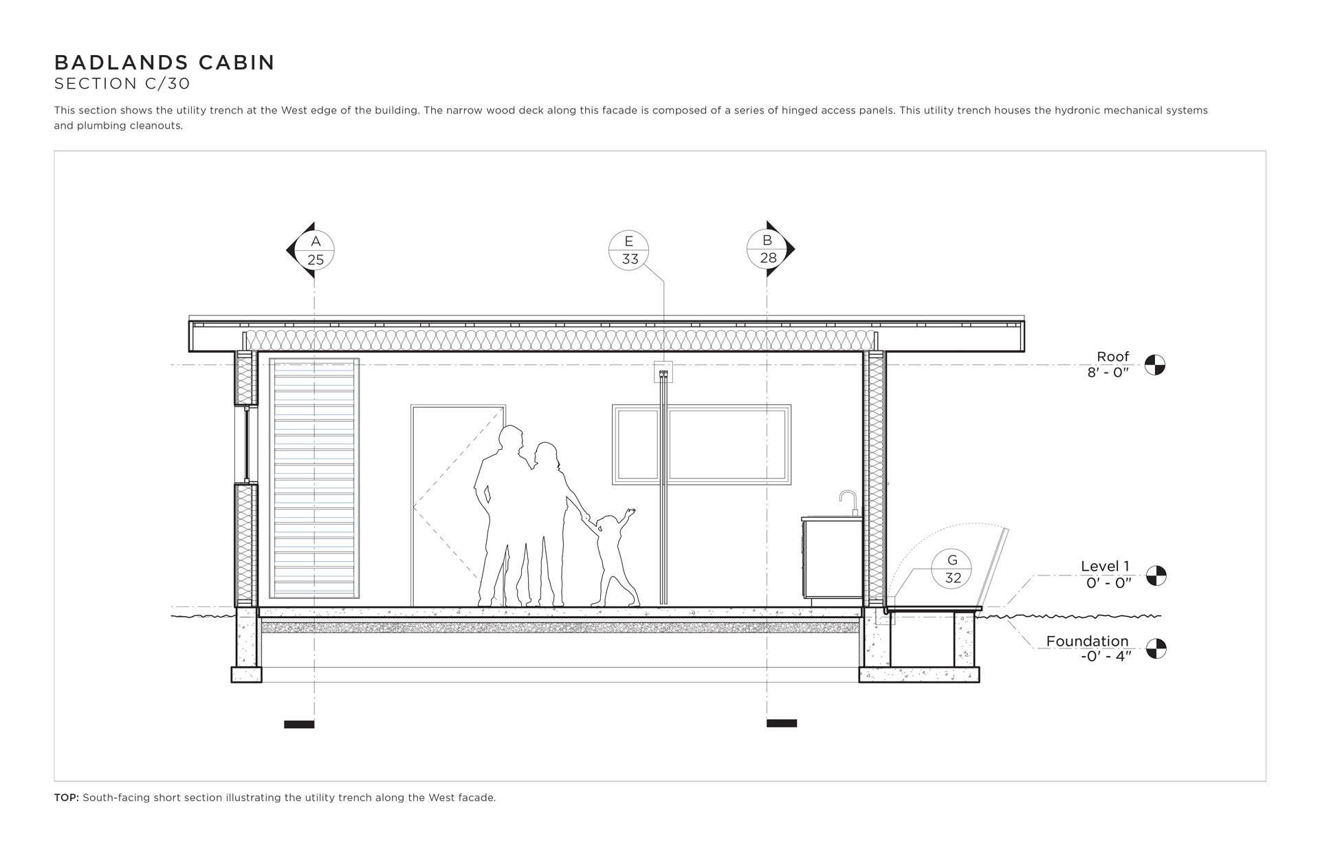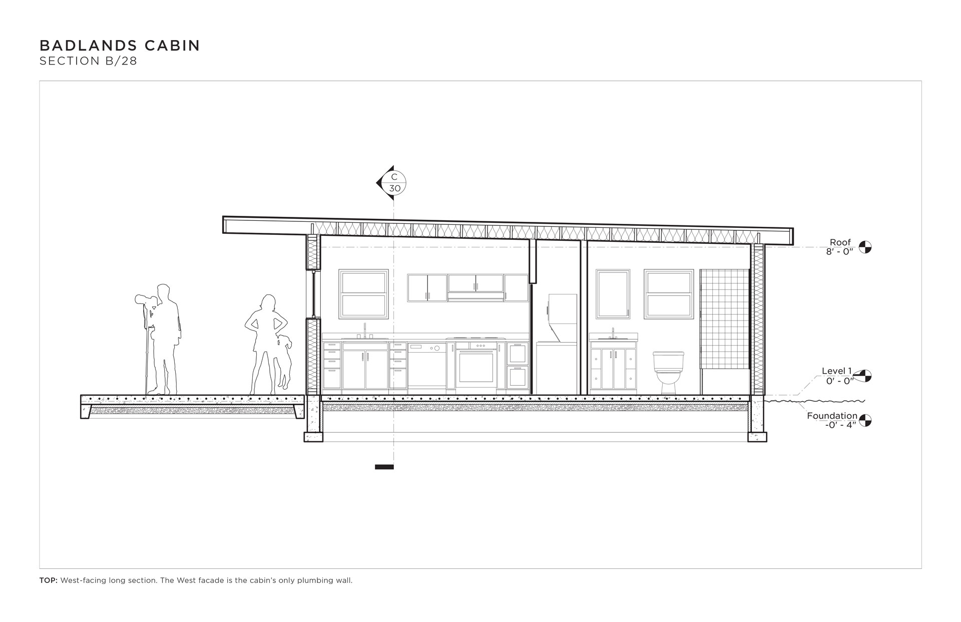 I designed this cabin for an area of the Mojave desert known as The Devil’s Playground. There is no water, there is no shade, sandstorms are frequent, the days are hot and the nights are freezing. This cabin makes light of this forbidding climate using operable ventilation louvres, sunshading devices, and a two-way passive solar hydronic subfloor system that both heats and cools year-round.