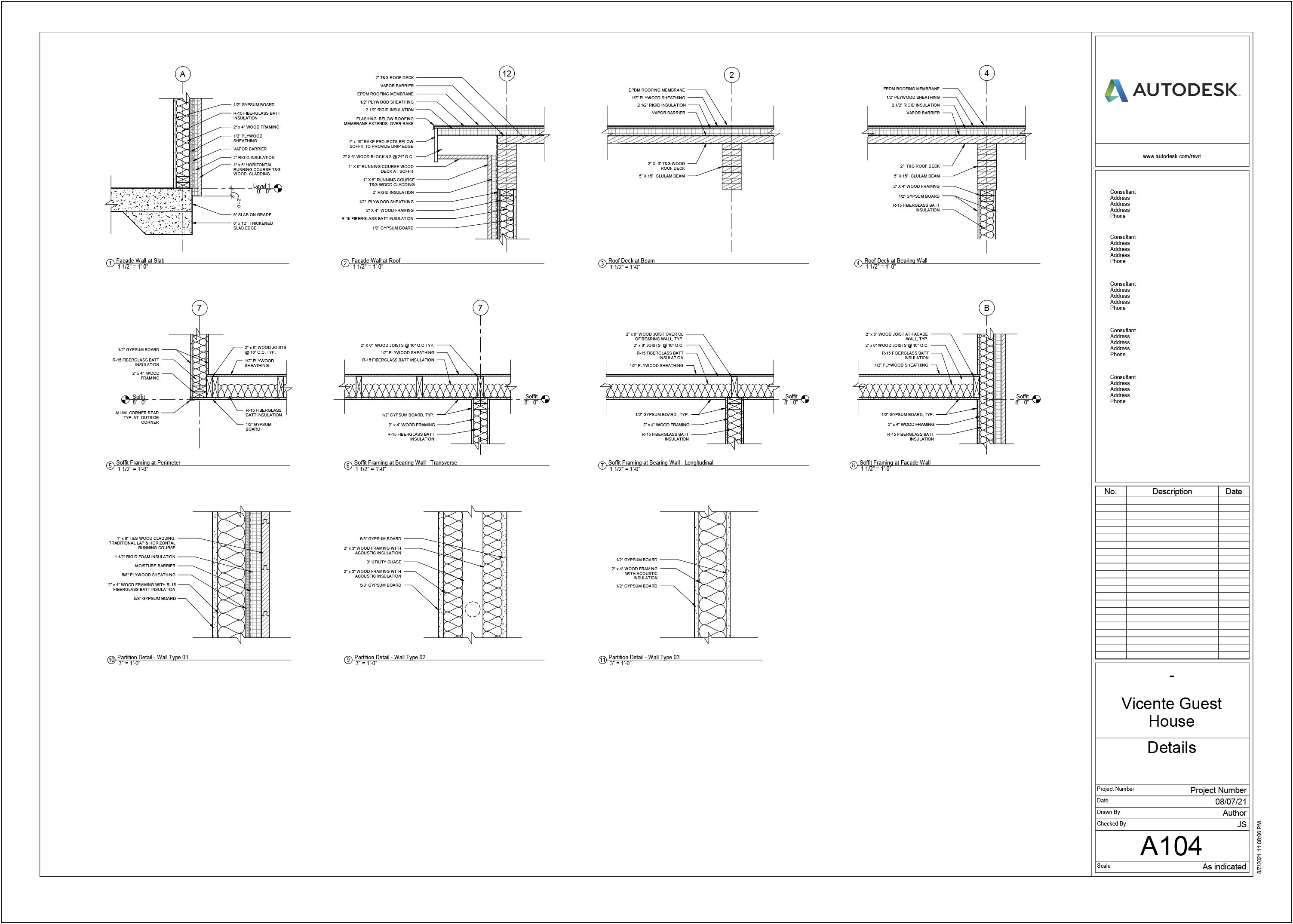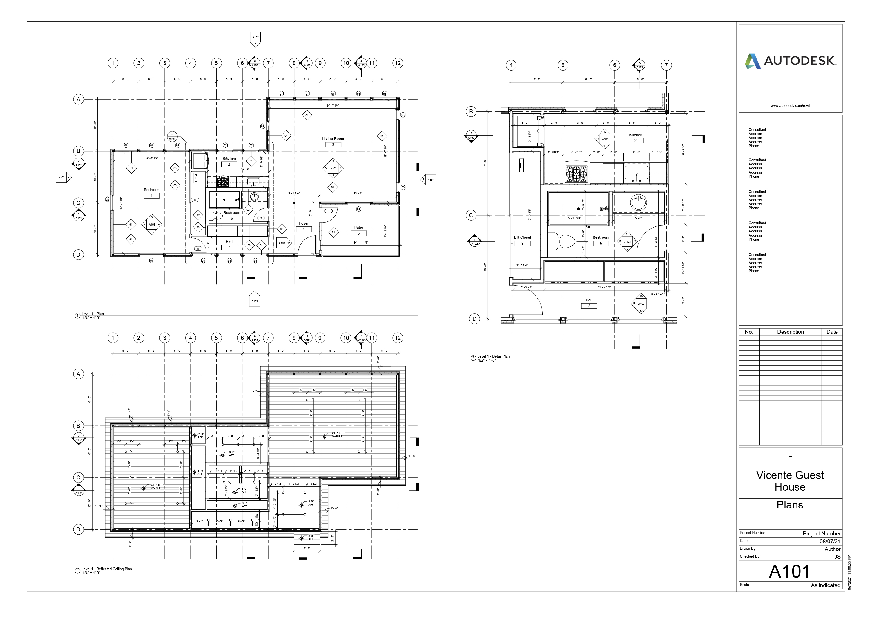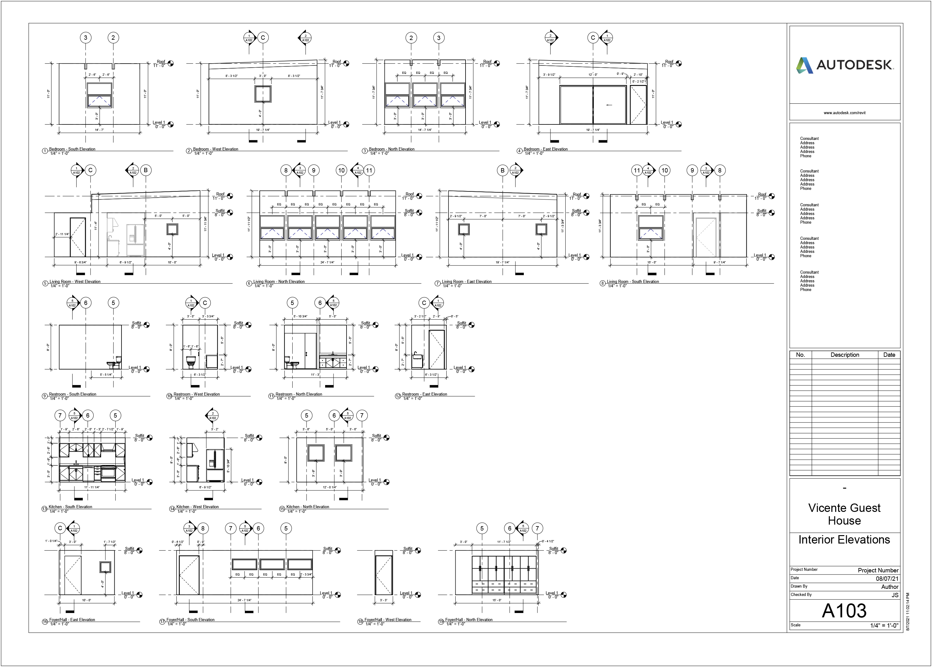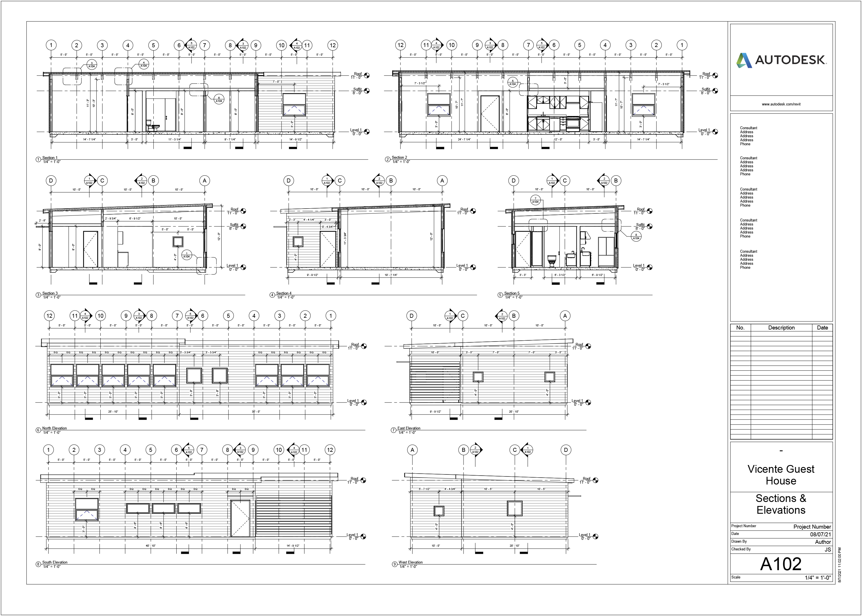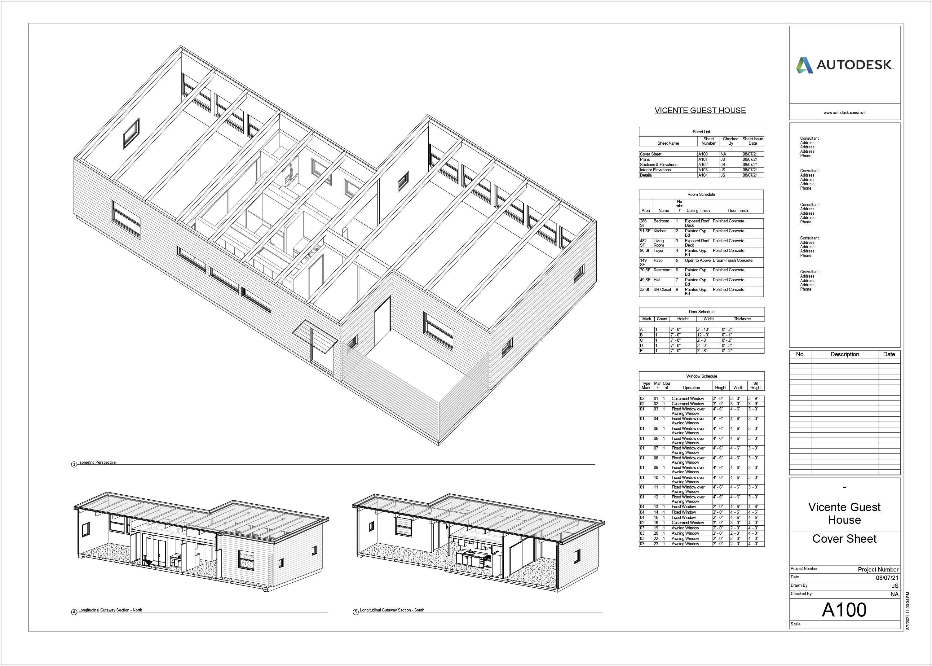 I designed the Vicente Guest House as a Revit Modeling & Drafting exercise. It is a standalone single family residence of approximately 1,400 square feet and it is a type IV building.